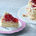 Нежный слоеный десерт, состоящий из множества воздушных коржей, пропитанных ароматным заварным кремом. Верх торта украшен сочной вишней в прозрачном желе, что придает ему особую свежесть и праздничный вид. Это идеальное сочетание хрустящих слоев и нежного крема с фруктовой ноткой.
