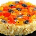 Торт украшен кусочками манго и клубники. Каждый кусочек этого торта - настоящее путешествие в тропики, наполненное яркими вкусами и радужными оттенками.