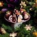 Рождественские трюфели 3 видов: - с начинкой из марципана в белом шоколаде; - с начинкой из орехового пралине в горьком шоколаде; - с цельным фундуком, апельсиновой цедрой и сушеной клюквой.