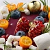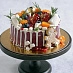 Песочные коржи с изюмом, черносливом, курагой и вяленой клюквой. Коржи пропитаны ромом и прослоены сливочным кремом с апельсином.