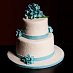 Свадебный торт с нежными букетами бирюзовых цветов. Цветы изготавливаются из сахарной пасты и собираются в букеты, вы можете их сохранить в качестве сувенира или подарить гостям.